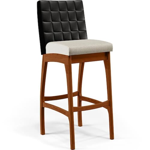 ndo muita excelência, a Banqueta Alta Cozinha Sala De Jantar Fixa Mila B04 Couríssimo Preto Linho Champagne - Lyam Decor é o complemento que faltava para deixar sua casa ainda mais extraordinária. Seu encosto com costura em padrão quadriculado e assento estofados, centralizam em si uma graciosidade estonteante, sem perder todo o conforto. A estrutura em madeira, na cor nozes, também é digna de notoriedade, por imprimir bastante personalidade a sua decoração. Vale ressaltar ainda, o apoio para os pés que garante maior à mesma.