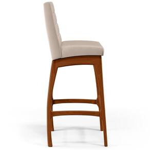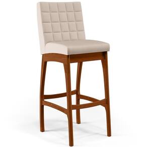 ndo muita excelência, a Banqueta Alta Para Cozinha Sala de Jantar Fixa Mila B04 Suede Bege - Lyam Decor é o complemento que faltava para deixar sua casa ainda mais extraordinária. Seu encosto com costura em padrão quadriculado e assento estofados, centralizam em si uma graciosidade estonteante, sem perder todo o seu conforto. A estrutura em madeira, na cor nozes, também é digna de notoriedade, por imprimir bastante personalidade a sua decoração. Vale ressaltar ainda, o apoio para os pés que garante maior à mesma.