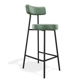 Banqueta Alta Cozinha Kobe Estofada Com Encosto Couríssimo Verde - Desk Design
