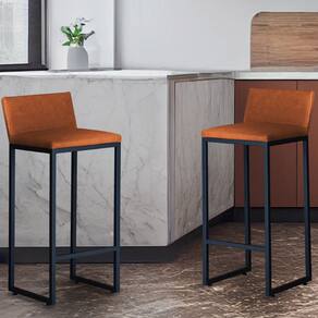 Banqueta Alta Dani Reforçada Decorativa Balcão Bancada Cozinha Bar Base Preta Courino - Marrom | Laranja