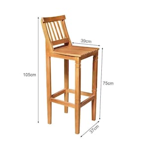 Banqueta Alta De Madeira Maciça Ripada Com Encosto Confort - Castanho - Cor: Marrom
