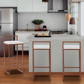 A Banqueta Alta Decorativa Estofada Adélia Com Armação Dourada é uma banqueta
