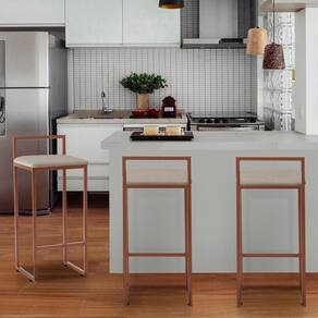 A Banqueta Alta Decorativa Adélia Em Linho Com Armação Dourada é uma banqueta