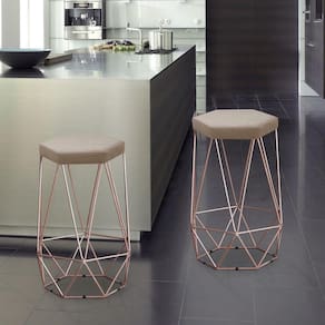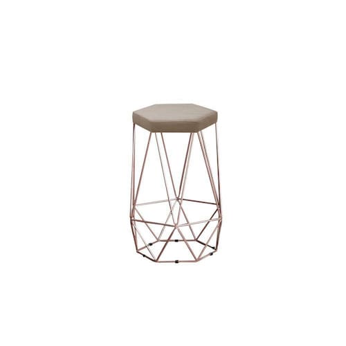 A Banqueta Alta Decorativa Rubi Em Suede Com Armação Bronze é uma banqueta