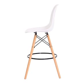 Modelo: Banqueta Alta Eiffel Eames Branca Base Madeira Assento: Polipropileno Base: Madeira Profundidade: 54 cm Largura: 46 cm Altura Total: 106 cm Altura do Chão Até o Assento: 71 cm Profundidade Interna do Assento: 42 cm Largura Interna do Assento: 46 cm Peso Máx. Recomendado: 120 kgs Peso unitário: 6 kgs