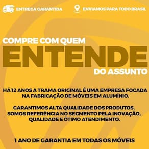 - Pecas produzidas em aluminio polido e revestidas em fibra sintetica com protecao UV.