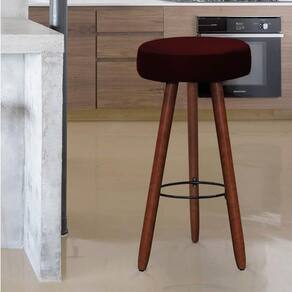 Banqueta Alta Estofada Dalia Com Pés Em Madeira