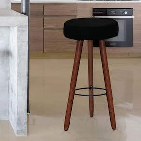 A Banqueta Alta Estofada Dalia Em Suede Com Pés Em Madeira é produzida com materiais