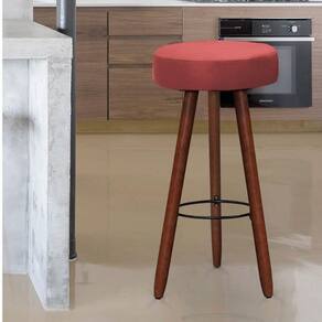 Banqueta Alta Estofada Dalia Em Suede Com Pés Em Madeira - Marrom