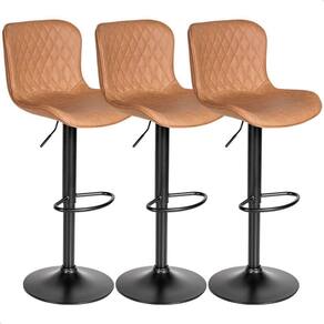 Banqueta Alta Giratória Com Encosto Cozinha Bar Kit 03 Un Caramelo - P080