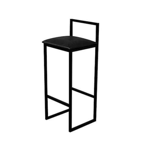 Banqueta Industrial Com Encosto Luna Em Aço Preto Assento Corino Preto
