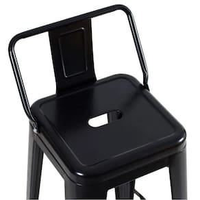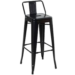 Banqueta Alta Industrial Preta em Aço 76cm Iron Tolix com Encosto - Preto