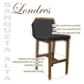 Banqueta Alta Londres Corino Preto - Fratello