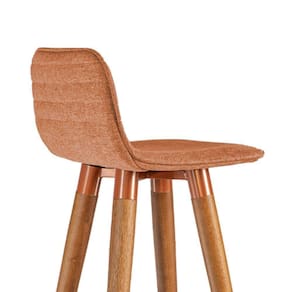 Banqueta Alta Luxo Linea Aço Cobre Linho Terracota Base Carvalho - Cor: Marrom