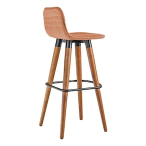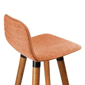 Banqueta Alta Luxo Linea Aço Preto Linho Terracota Base Carvalho