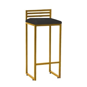 Banqueta Alta Com Encosto Núria Balcão Bar Cozinha Bistrô Ferro Dourado Suede Cinza - Ahazzo Móveis Cor Cinza