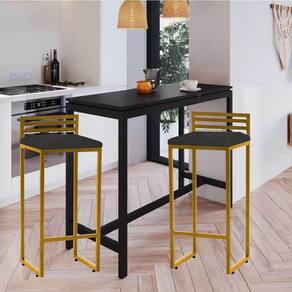 Banqueta Alta Núria Bar Bistrô Ferro Dourado Suede Cinza
