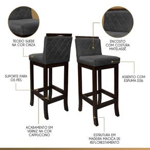Apresentamos a banqueta Nice, feita com madeira maciça de reflorestamento e acabamento em verniz. Seu assento preenchido com espuma D26 e encosto com espuma D23 garantem conforto duradouro. O encanto adicional vem da costura matelassê no encosto, enquanto o revestimento em suede adiciona uma sensação de luxo. Adapta-se perfeitamente a qualquer espaço, adicionando elegância e conforto instantaneamente. CARACTERÍTICAS TÉCNICAS: - Produzido em Madeira Maciça de Reflorestamento; - Acabamento em Verniz na cor Capuccino; - Assento Preenchido com Espuma D26; - Encosto Preenchido com Espuma D23; - Encosto com Costura Matelassê; - Revestimento em Suede na cor Cinza. *Indicada para Bancadas/Mesas com Alt. 100/105 cm. *PRODUTO ENVIADO MONTADO. INFORMAÇÕES TÉCNICAS: Altura Total: 102 cm Altura até Assento: 75 cm Altura até Travessa: 23 cm Altura Encosto: 35 cm Largura Assento: 38 cm Largura Estrutura: 36 cm Profundidade Total: 42 cm Profundidade Assento: 41 cm Peso: 7 kg INFORMAÇÕES ADICIONAIS:ATENÇÃO: Móvel produzido em madeira maciça natural podendo ocorrer mudança no tom da madeira conforme o produto;*Conferir se o produto está de acordo com o que comprou, produto danificado não será aceito troca;**As imagens ambientadas são meramente ilustrativas e podem apresentar itens que não compõe o produto. As cores do produto podem variar de acordo com o monitor, a iluminação do ambiente ou sua percepção visual;***Limpeza deve ser feita com pano macio e seco ou levemente umedecido com água e sabão neutro. Não devem ser utilizados abrasivos como palha de aço e objetos cortantes;Garantia para defeitos de fabricação conforme Código de Defesa do Consumidor. Marca: CCS Interiores