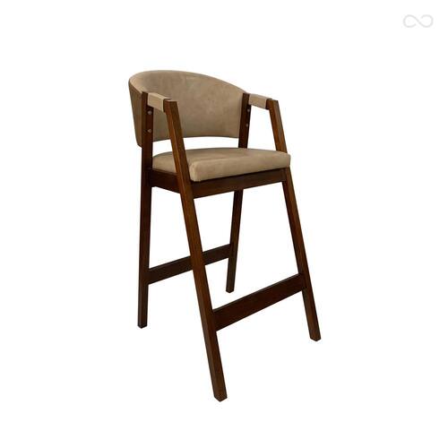 CARACTERÍSTICAS TÉCNICAS: - Produzido em Madeira Maciça; - Acabamento Verniz na Cor Capuccino; - Assento com Espuma D26; - Encosto com Espuma D23; - Revestido em Tecido Material Sintético na Cor Bege e Marrom.