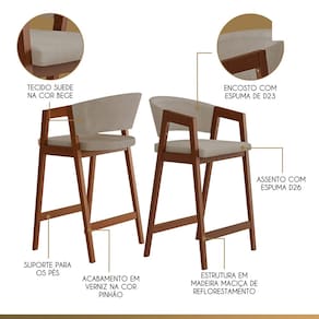 Transforme seu ambiente com a elegância e conforto da Banqueta Ravena, uma peça que alia sofisticação e qualidade. Ideal para compor cozinhas, bancadas e áreas de convivência, a Banqueta Ravena é um destaque que une funcionalidade e design. A Banqueta Ravena é a escolha perfeita para quem busca um mobiliário de alta qualidade, com um design clássico que agrega valor e conforto ao ambiente. Sua construção robusta em madeira maciça, aliada ao conforto das espumas e ao toque sofisticado do tecido suede, fazem desta banqueta uma peça indispensável para composições modernas e elegantes. CARACTERÍSTICAS TÉCNICAS: - Produzido em Madeira Maciça; - Acabamento Verniz na Cor Pinhão; - Assento com Espuma D26; - Encosto com Espuma D23; - Revestido em Tecido Suede na Cor Bege. *BANQUETA ENTREGUE MONTADA. INFORMAÇÕES TÉCNICAS: Altura Total: 105 Cm Altura do Encosto: 31 Cm Altura até o Assento: 71 Cm Altura até o Braço: 91 Cm Altura do Chão até o Apoio dos Pés: 26 Cm Largura Total: 50 Cm Largura do Assento: 45 Cm Profundidade do Assento: 41 Cm Profundidade dos Pés: 51 Cm Peso: 8 Kg INFORMAÇÕES ADICIONAIS: ATENÇÃO: Móvel produzido em madeira maciça natural podendo ocorrer mudança no tom da madeira conforme o produto; *Conferir se o produto está de acordo com o que comprou, produto danificado não será aceito troca; **As imagens ambientadas são meramente ilustrativas e podem apresentar itens que não compõe o produto. As cores do produto podem variar de acordo com o monitor, a iluminação do ambiente ou sua percepção visual; ***Limpeza deve ser feita com pano macio e seco ou levemente umedecido com água e sabão neutro. Não devem ser utilizados produtos abrasivos; Garantia para defeitos de fabricação conforme Código de Defesa do Consumidor. Marca: CCS Interiores