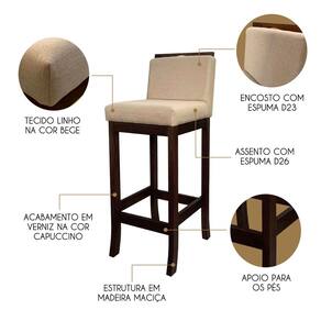 A Banqueta Alta Estofada Turim é um móvel versátil que vai deixar seu ambiente cheio de estilo. Possui um design atual com cores sobreas que pode ser aplicada em diversas composições e decorações. Por causa da sua versatilidade consegue ser utilizada em diferentes ambientes como bancadas altas, espaços gourmet, salão de festas, bares, cantinho do churrasco ou onde você precisar. Seu assento é preenchido com espuma D26, o encosto com espuma D23 e o revestimento é com tecido Linho que proporciona conforto e elegância. A Banqueta Turim é produzida com materiais de excelente qualidade, garantindo sua durabilidade e vida útil. Móveis sofisticados e com alta qualidade, só na CCS Interiores. CARACTERÍTICAS TÉCNICAS: - Produzido em Madeira Maciça de Reflorestamento - Acabamento em Verniz na cor Capuccino - Assento Preenchido com Espuma D26 - Encosto Preenchido com Espuma D23 - Revestimento em Linho na cor Bege *Indicada para Bancadas/Mesas com Alt. 100/105 cm *PRODUTO ENVIADO MONTADO.