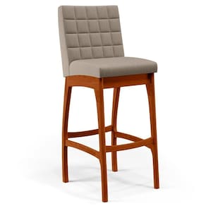 ndo muita excelência, a Banqueta Alta Para Cozinha Sala de Jantar Fixa Mila B04 Linho Bege - Lyam Decor é o complemento que faltava para deixar sua casa ainda mais extraordinária. Seu encosto com costura em padrão quadriculado e assento estofados, centralizam em si uma graciosidade estonteante, sem perder todo o seu conforto. A estrutura em madeira, na cor nozes, também é digna de notoriedade, por imprimir bastante personalidade a sua decoração. Vale ressaltar ainda, o apoio para os pés que garante maior à mesma.
