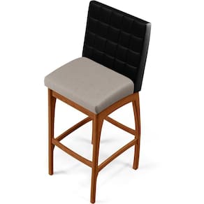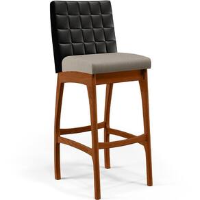 ndo muita excelência, a Banqueta Alta Para Cozinha Sala De Jantar Fixa Mila B04 Couríssimo Preto Linho Bege - Lyam Decor é o complemento que faltava para deixar sua casa ainda mais extraordinária. Seu encosto com costura em padrão quadriculado e assento estofados, centralizam em si uma graciosidade estonteante, sem perder todo o conforto. A estrutura em madeira, na cor nozes, também é digna de notoriedade, por imprimir bastante personalidade a sua decoração. Vale ressaltar ainda, o apoio para os pés que garante maior à mesma.
