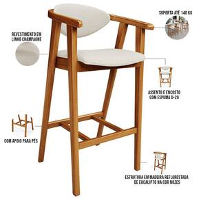 A melhor escolha para os momentos de confraternização no aconchego da sua casa, acaba de chegar! A Banqueta Alta Para Cozinha Bancada Bar Sala de Jantar Fixa Cecília L02 Linho Champagne - Lyam vem com a personalidade e elegância que sua decoração merece! É ideal desde refeições rápidas, até um Happy Hour com os amigos, família. Seu design único valoriza o ambiente, sem deixar pra trás a beleza e qualidade! Para deixar a sua área gourmet mais aconchegante, ela possui assento e encosto estofados, confeccionados com materiais de excelente qualidade, e extremamente resistentes.