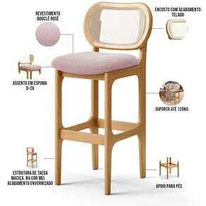 Amplamente sofisticada, a Banqueta Betta irá agregar ainda mais valor em sua decoração!! Sendo capaz de compor muito bem o ambiente, é produzida com materiais de excelente qualidade, a resistente estrutura em madeira de Taeda, na cor Mel, conta com apoio para os pés (que garante maior segurança), além do assento e encosto estofados super confortáveis e convidativos, que são revestidos em tecido Bouclê, extremamente elegante. Podendo ser disposta em bancada, cozinha americana, espaço gourmet ou home bar, as possibilidades de combinação são infinitas, o que a torna perfeita para receber família e amigos sempre de forma agradável e aconchegante, sem perder a sobriedade e requinte que possui. Você e seu lar merecem, adquira já a sua!!