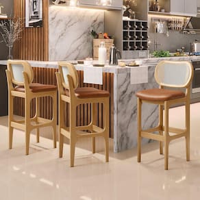 Banqueta Alta Para Cozinha Bancada Sala Tela Betta Fixa L02 Couríssimo Whisky - Lyam - Laranja