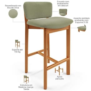 Banqueta Alta Para Cozinha Sala De Jantar Bar Dara L02 Bouclê Oliva - Lyam Decor