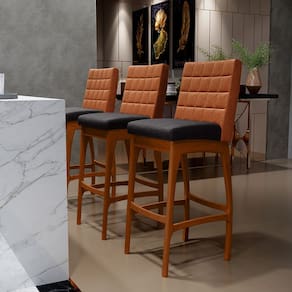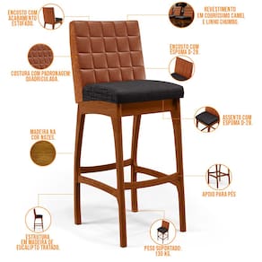 Entregando muita excelência, a Banqueta Alta Para Cozinha Sala De Jantar Fixa Mila B04 Couríssimo Camel Linho Chumbo - Lyam Decor é o complemento que faltava para deixar sua casa ainda mais extraordinária. Seu encosto com costura em padrão quadriculado e assento estofados, centralizam em si uma graciosidade estonteante, sem perder todo o conforto. A estrutura em madeira, na cor nozes, também é digna de notoriedade, por imprimir bastante personalidade a sua decoração. Vale ressaltar ainda, o apoio para os pés que garante maior segurança à mesma.