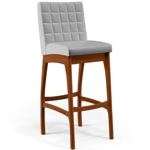 ndo muita excelência, a Banqueta Alta Para Cozinha Sala de Jantar Fixa Mila L02 Facto Cinza Metalizado - Lyam Decor é o complemento que faltava para deixar sua casa ainda mais extraordinária. Seu encosto com costura em padrão quadriculado e assento estofados, centralizam em si uma graciosidade estonteante, sem perder todo o seu conforto. A estrutura em madeira, na cor nozes, também é digna de notoriedade, por imprimir bastante personalidade a sua decoração. Vale ressaltar ainda, o apoio para os pés que garante maior à mesma.