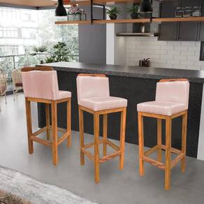 Transforme o seu espaço com a Banqueta Alta Rubi Veludo Base Fixa de Madeira.