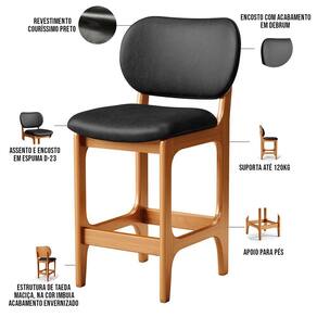 Amplamente sofisticada, a Banqueta Baixa Bar Cozinha Sala Jantar Betta L02 Imbuia Couríssimo Preto - Lyam Decor irá agregar ainda mais valor em sua decoração!! Sendo capaz de compor muito bem o ambiente, é produzida com materiais de excelente qualidade, a resistente estrutura em madeira de Taeda, na cor imbuia, conta com apoio para os pés (que garante maior segurança), além do assento e encosto estofados super confortáveis e convidativos, que são revestidos em tecido Couríssimo, composição extremamente elegante.