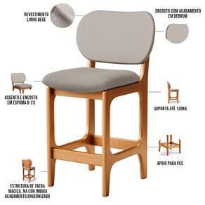Amplamente sofisticada, a Banqueta Baixa Bar Cozinha Sala Jantar Betta L02 Imbuia Linho Bege - Lyam Decor irá agregar ainda mais valor em sua decoração!! Sendo capaz de compor muito bem o ambiente, é produzida com materiais de excelente qualidade, a resistente estrutura em madeira de Taeda, na cor imbuia, conta com apoio para os pés (que garante maior segurança), além do assento e encosto estofados super confortáveis e convidativos, que são revestidos em tecido Couríssimo, composição extremamente elegante.