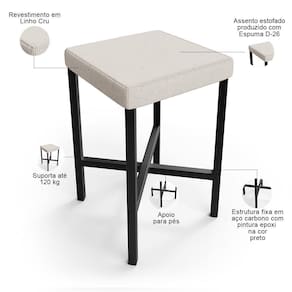 Color: Cru | ColorFamily: Cru | ColorSimple: Branco | ColorSupplier: Cru | Material: Estrutura de aço carbono, Revestimento em Linho e espuma | MaterialFamily: Aço carbono, linho espuma | Model: Stella | OriginCountry: Nacional | OriginState: PR | ProductContents: 01 Banqueta | ProductHeight: 49 cm | ProductInstructions: Produto para uso em ambiente interno, nao devendo ficar exposto ao sol, calor e umidade excessivos. | ProductLength: 37 cm | ProductWarranty: 90 dias após o recebimento do produto | ProductWeight: 4 kg | ProductWidth: 39 cm | SizeDescription: Altura: 49 cm x Largura: 39 cm x Profundidade: 37 cm | SupplierSimpleName: Banqueta Baixa Bar Cozinha Sala De Jantar Preto Stella L02 Linho Cru - Lyam Decor