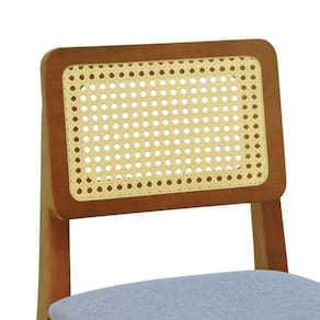 - Materiais: Estrutura madeira de pinus maciço, encosto em anatômico com aplicação de telinha sextavada e assento estofado, espuma D26 e tecido Linho ou Corano