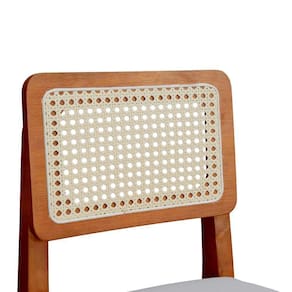 - Materiais: Estrutura madeira de pinus maciço, encosto em anatômico com aplicação de telinha sextavada e assento estofado, espuma D26 e tecido Linho ou Corano