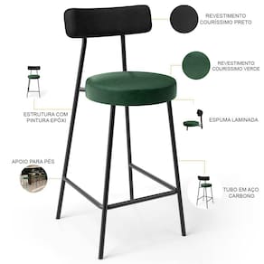 Amplamente moderna, dispondo de muito realce e design singular, a Banqueta Baixa Para Cozinha Sala De Jantar Bar Bancada Milão L02 Couríssimo Preto Brilho Facto Verde Musgo - Lyam Decor vem com a personalidade e elegância que sua decoração merece! Estruturada em aço carbono, contrasta lindamente com o encosto e assento estofados, cabe mencionar ainda seu revestimento em Couríssimo, é confeccionada por materiais de excelente qualidade, extremamente resistentes e aconchegantes.