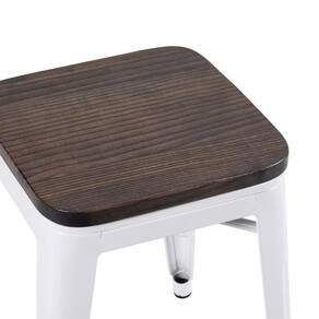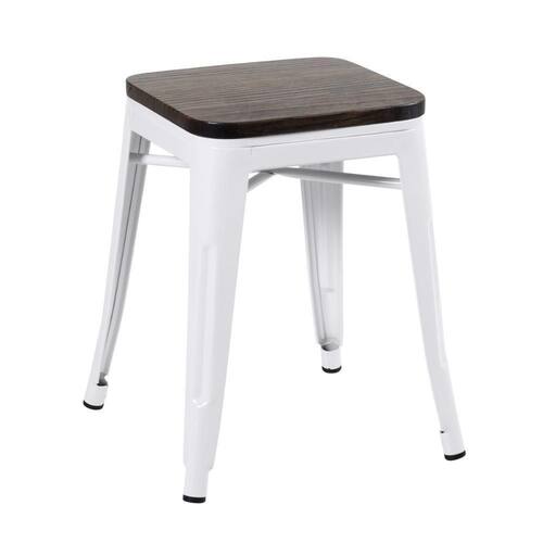 Banqueta Baixa Iron Tolix Com Assento De Madeira Rústica Escura 45 Cm Branco Branco - Madeira Rústica Escura