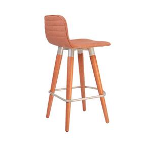 Banqueta Baixa Linea Aço Champanhe para Cozinha Balcao Gourmet Design Moderno - Terracota Assento - Laranja
