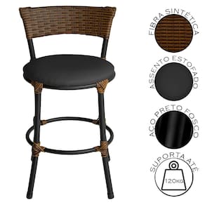 Banqueta Pisa Baixa com Encosto ? Aço Carbono, Estofado e Fibra Sintética