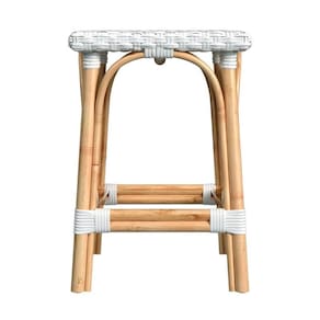 Variações na tonalidade e nas marcas são normais e podem ser esperadas com os materiais naturais utilizados na construção deste produto. Especificações: Montagem necessária: Não Dimensões do produto: 16,5 “L x 16,5” P x 24" H Peso do produto: 8 libras Capacidade de peso: 500 libras Material: rattan, rattan sintético de poliuretano (PE) Cor/acabamento: branco brilhante/estrutura de vime natural - O