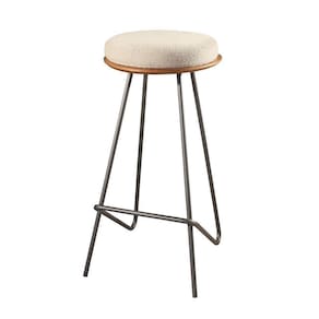 Banqueta Canastra Base Preta Tampo Cinamomo Estofado Cor:linho Bege - Preto