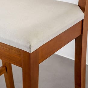 Banqueta bar com estrutura de madeira maciça de reflorestamento, assento estofado e encosto com palha natural de algodão, Os diferentes materiais aplicados nesta banqueta empregam na peça um visual elegante e acolhedor, A palha natural do encosto é o destaque, trazendo leveza e conforto ao usuário, Acabamento da Estrutura: Não se Aplica Almofada do assento: Fixa Altura do assento até o chão: 77 cm Altura Regulável: Não Ambiente Principal: Sala de Jantar Complexidade da Montagem: Baixa: pode ser montado por uma pessoa sozinha Cor do Produto: Amêndoa/Off White Cor Predominante: Marrom Dobrável: Não Escala de Brilho: Fosco Itens Inclusos: 1 Banqueta, kit de ferragens e manual de montagem Linha ou Coleção: Tiê Material do Assento: Almofada com Espuma Necessita Montagem: Sim Peso: 7 kg Possui Almofada no Assento: Sim Possui Apoio Para os Pés: Sim Possui Encosto: Sim Possui Rodízio: Não Recomendações de Uso, Manutenção e Limpeza: Use um pano macio, levemente umedecido com água, É possível o uso detergente neutro, ou sabão neutro com água, Revestimento do Assento: Linho Bege Sistema de Montagem: Cavilhas e parafusos Tipo de Assento: Fixo Tipo de Encosto: Fixo Tipo de Madeira Maciça: Eucalipto