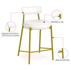 Banqueta Cozinha Alta Com Encosto Industrial Dourado Kit 4 Londres Pu D03 - D'rossi Branco Renove sua cozinha, área gourmet ou ambiente comercial com o kit 4 Banquetas Alta Londres em sintético PU. Com 95 cm de altura total e 75 cm do assento ao chão, possui a proporção perfeita para bancadas e ilhas altas, garantindo conforto e ergonomia em cada uso. A estrutura em aço carbono na dourada combinada à madeira de reflorestamento assegura resistência e durabilidade, enquanto o acabamento em pintura epóxi protege e realça o visual industrial da peça. O assento e o encosto fixos, estofados em espuma D-26 de alta densidade, proporcionam maciez e sustentação ideais. O revestimento agrega sofisticação e é fácil de limpar, mantendo o aspecto elegante por muito mais tempo. Seu design industrial apresenta base metálica vazada, que traz leveza visual e robustez estrutural, além de apoio para os pés integrado e capacidade para até 120 kg com total segurança. A Banqueta Londres é a escolha certa para quem busca elegância, praticidade e conforto em um só produto. Dimensões do Produto: Altura: 95 cm Largura: 37 cm Profundidade: 47 cm Peso: 6 kg Outras Medidas: Altura para apoio dos pés: 30 cm Altura do Assento até o Chão: 75 cm Especificações do Produto: Material da Estrutura: Aço Carbono e Madeira de reflorestamento Acabamento: Pintura Epóxi Peso Suportado: Até 120 Kg sem impacto Revestimento do Assento: Sintético PU Possui Almofada no Assento: Sim Tipo de Assento: Fixo Enchimento do Assento: Espuma D-26 Material do Assento: Almofada com Espuma Possui Encosto: Sim Tipo de Encosto: Fixo Material do Encosto: Acabamento estofado no mesmo material do assento. Possui Apoio para Braços: Não Tipo de Pés: Base metálica Industrial Fixa Possui Apoio de Pés: Sim Com Altura Ajustável: Não É Giratória: Não Possuí Rodízios: Não Diferenciais: Design estilo Industrial; Conforto extra; Estrutura resistente e elegante Sistema de Montagem: O produto é enviado montado Garantia: 90 dias contra defeito de fabricação Instruções de Limpeza: Utilizar pano limpo e levemente úmido. Quantidade de Volumes: 1 Caixa Medida das Embalagens: Caixa 1: 150 cm x 71 cm x 58 cm Peso Produto Embalado: 29 kg Entrega: É feita somente até o térreo ou portaria. Confira sempre as medidas das embalagens para assegurar que o produto passe por portas e escadas do local.