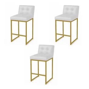 Banqueta Cozinha Alta Com Encosto Industrial Kit 3 Dourado Lirina Pu Branco C05 - D'rossi O Kit com 3 Banquetas Lirina revestida em tecido Sintético PU Branco na base dourada é o toque de charme e sofisticação que transforma qualquer ambiente. Com design moderno e estrutura industrial em aço carbono, combina resistência e elegância em cada detalhe. O assento oferece conforto e fácil limpeza, enquanto o encosto fixo com espuma D-23 garante o apoio ideal para momentos de descontração. Versátil, é perfeita para cozinhas, bancadas, áreas gourmet, varandas cobertas, bares e espaços comerciais, valorizando cada espaço com estilo e personalidade. Possui apoio para os pés a 19 cm, altura do assento de 73 cm e suporta até 120 kg. Chega pronta para usar, sem necessidade de montagem. Ideal para quem busca conforto, durabilidade e design contemporâneo em um só produto. Dimensões do Produto: Altura: 93 cm Largura: 37 cm Profundidade: 35 cm Peso: 8 kg Outras Medidas: Altura do Encosto: 27 cm Altura do Chão ao Assento: 73 cm Altura do Apoio de Pés: 19 cm Especificações do Produto: Estrutura: Base Metálica em Aço Carbono Material do Assento: Madeira Eucalipto Tipo de Pés: Base Industrial Material/Acabamento dos Pés: Aço Carbono com Pintura eletrostática Peso Suportado: Até 120 kg Tecido: Sintético PU Material do Estofamento: D-23 (alta densidade) Possui Apoio de Pés: Sim Possuí Rodízios: Não Possui Encosto: Sim Com Altura Ajustável: Não Tipo de Assento: Fixo Tipo de Encosto: Fixo Possui Apoio de Braço: Não Pode ser em área externa: Sim, desde que seja protegido do calor excessivo e da chuva. Diferenciais: Detalhe de costura no encosto e assento, Conforto e design moderno, Estrutura reforçada Medida das Embalagens: Caixa 1: 97cm x 76cm x 72cm Peso da Embalagem: 27 kg : É feita somente até o térreo ou portaria. Confira sempre as medidas das embalagens para assegurar que o produto passe por portas e escadas do .