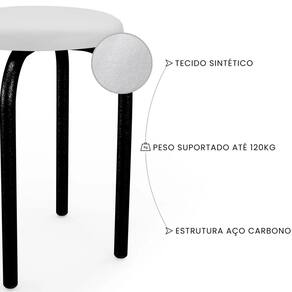 Com design minimalista e estilo industrial, o Kit com 4 Banquetas Jully de 45 cm, sendo a união perfeita entre elegância e praticidade. Sua estrutura em aço carbono com pintura epóxi garante resistência, enquanto o assento em tecido sintético oferece conforto e facilidade na limpeza. Com capacidade para até 120 kg, possui pés antiderrapantes e montagem simples. Versátil e moderna, é perfeita para quem valoriza estilo e funcionalidade no aproveitamento do espaço. Também pode ser usada em áreas externas cobertas. Além de compacta e leve, é empilhável, facilitando o armazenamento para quem precisa otimizar ambientes com grande circulação ou múltiplas unidades. Ideal para diversos espaços, como cozinhas, varandas gourmet, áreas de serviço, escritórios, ateliês, salões de beleza ou até consultórios.