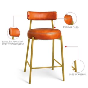 Renove sua cozinha, área gourmet ou ambiente comercial com o kit 4 Banquetas Média Londres em sintético PU. Com 85 cm de altura total e 65 cm do assento ao chão, possui a proporção perfeita para bancadas e ilhas médias, garantindo conforto e ergonomia em cada uso. A estrutura em aço carbono na cor dourada combinada à madeira de reflorestamento assegura resistência e durabilidade, enquanto o acabamento em pintura epóxi protege e realça o visual industrial da peça. O assento e o encosto fixos, estofados em espuma D-26 de alta densidade, proporcionam maciez e sustentação ideais. O revestimento agrega sofisticação e é fácil de limpar, mantendo o aspecto elegante por muito mais tempo. Seu design industrial apresenta base metálica vazada, que traz leveza visual e robustez estrutural, além de apoio para os pés integrado e capacidade para até 120 kg com total . A Banqueta Londres é a escolha certa para quem busca elegância, praticidade e conforto em um só produto.